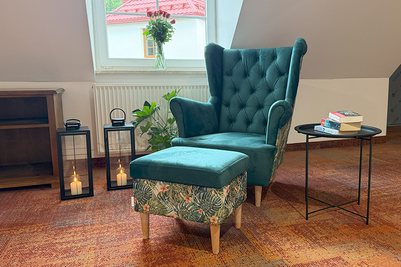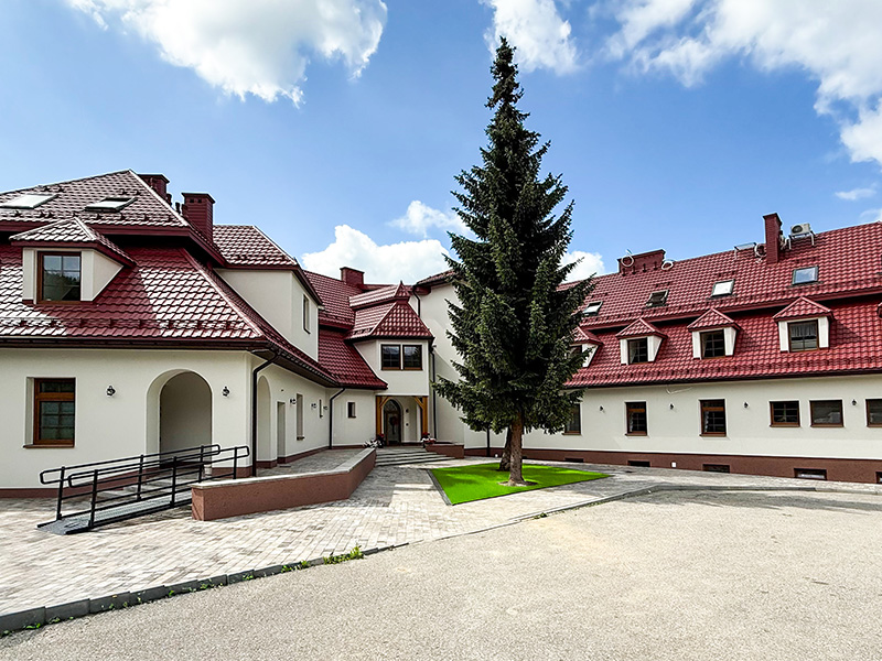 Zaczęliśmy od gruntownej modernizacji całego budynku. Wymieniliśmy dach, okna, drzwi i elewację, a także kostkę brukową wokół obiektu. Powstał również szyb na windę, który ułatwia poruszanie się po obiekcie wszystkim naszym gościom.