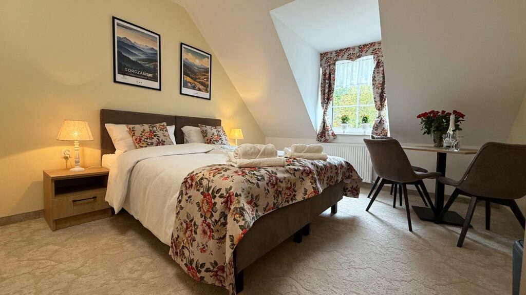 Pokój Deluxe to wyjątkowe połączenie przytulności i elegancji. Rustykalne wnętrza, naturalne materiały i detale z duszą tworzą przestrzeń, w której można poczuć się naprawdę swobodnie.
