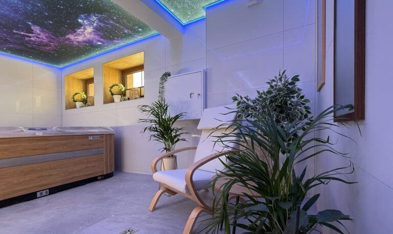 Tutaj zażyjesz relaksującej kąpieli pod rozgwieżdżonym „niebem”, idealnej na odprężenie i pełen komfort ciała oraz ducha.