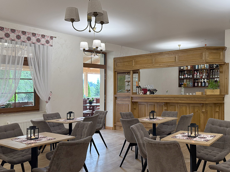 Wieczorem zapraszamy na kolację w naszej przytulnej sali restauracyjnej. W menu dania tradycyjne – np. kotlet schabowy z zasmażaną kapustą, moskole z masłem czosnkowym, zupy i dania jednogarnkowe.
