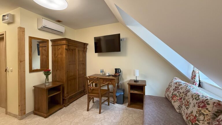 Każdy z naszych pokoi został starannie wyposażony, aby zapewnić Gościom wygodę, prywatność i swobodę wypoczynku. Niezależnie od celu podróży – czy to relaks, praca czy rodzinny wyjazd – znajdziesz u nas wszystko, co niezbędne, by poczuć się swobodnie, jak w domu.
